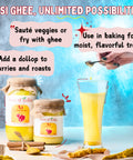 A2 Ghee is perfect for moisturizing both skin and hair. If you find your skin gets dryer in the winter months, or if you feel your hair is frizzy, then ghee can help. Simply apply ghee topically to your skin and hair and see the magical results for yourself!