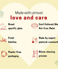Love of India's Desi A2 Rathi Cow Ghee is prepared using the traditional ‘Bilona’ method and is a vital source of holistic nourishment and taste.