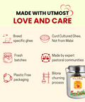 The curd is then churned bi-directionally at a controlled speed (Bilona Method) to yield the yummy butter while also ensuring that all the nutrients are retained.
