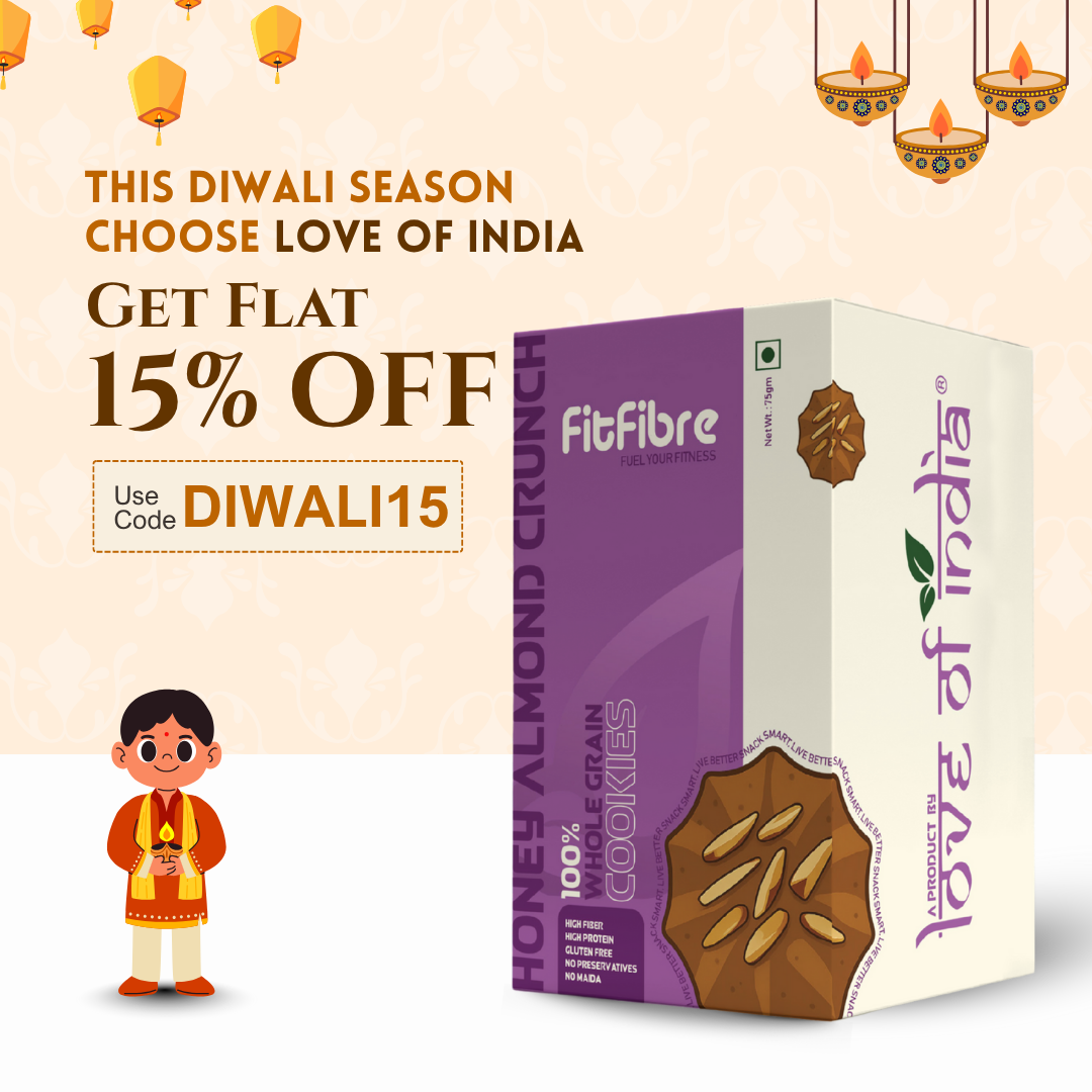 FitFibre Honey Almond Crunch Cookies are baked with whole grain flours (Jowar & Bajra), packed with the sweetness of honey, and goodness ofΒ almonds. A snack thatβs gluten-free, free from maida, high in protein and high in fiber designed to fuel your fitness while satisfying your taste buds.