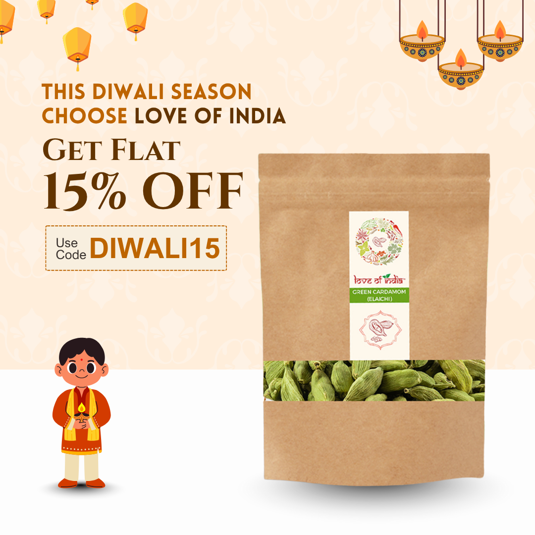 Love of India's Green Cardamom (Elaichi), known as the Queen of Spices, has a delicate sweetness & a beautiful aroma when added to food.